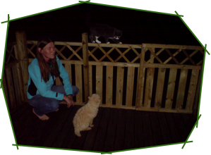 I dag har Peter och Max gjort ett nytt räcke runt verandan. Det gamla var ruttet. Muffin tyckte det var kul att springa runt runt. Och katten tyckte det var kul att gå balansgång.