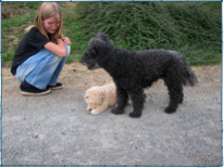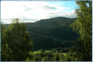 Muffin föddes på Livet’s kennel i Telemark i Norge. Utsikten från hennes födelsehus syns på lilla bilden. Hennes mamma Rask är den svarta hunden.